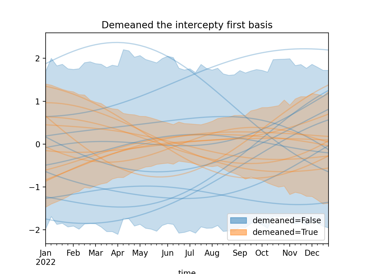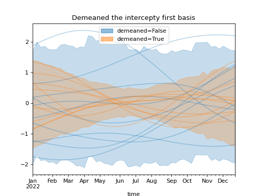 Using a demeaned basis to remove “intercept” effect of first basis: